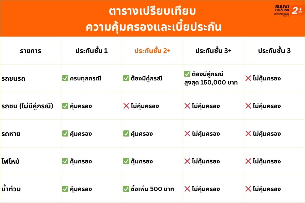 o ไม่คุ้มครองตัวรถ: ต้องรับผิดชอบค่าซ่อมรถของตัวเองทั้งหมด ไม่ว่าจะเป็นฝ่ายผิดหรือถูก