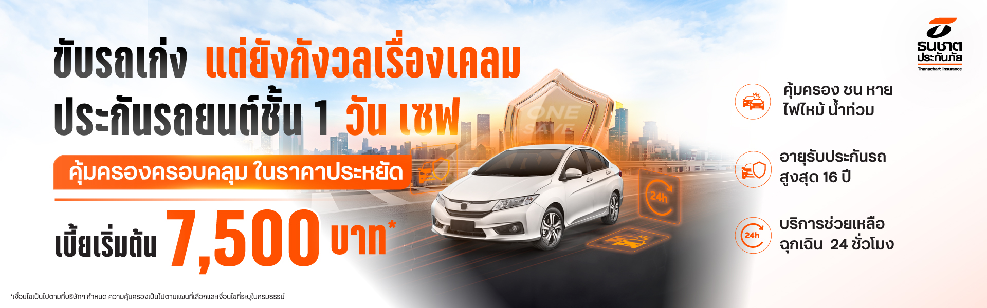 ประกันรถยนต์ชั้น 1 One Save จากธนชาตประกันภัย หากคุณกำลังมองหาประกันรถยนต์ชั้น 1 ที่คุ้มครองครบ ในราคาสบายกระเป๋า รองรับรถอายุสูงสุด 16 ปี เลือกธนชาต ชั้น 1 วัน เซฟ ดูแลคุณและรถคันโปรด